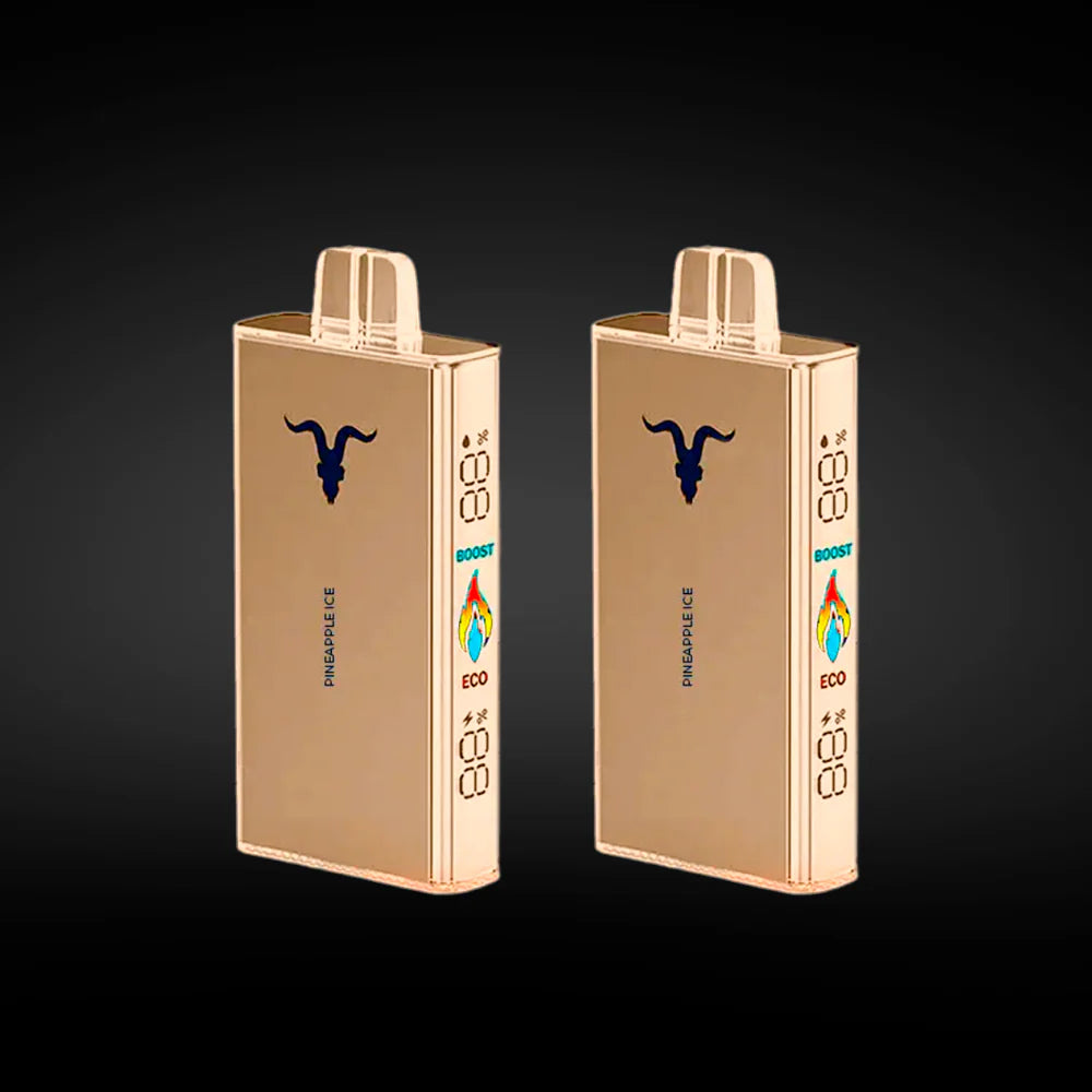 Seu design robusto e acabamento dourado unem estética premium e funcionalidade. O dispositivo conta com bateria recarregável via USB-C, permitindo melhor aproveitamento do e-líquido até o último puff.